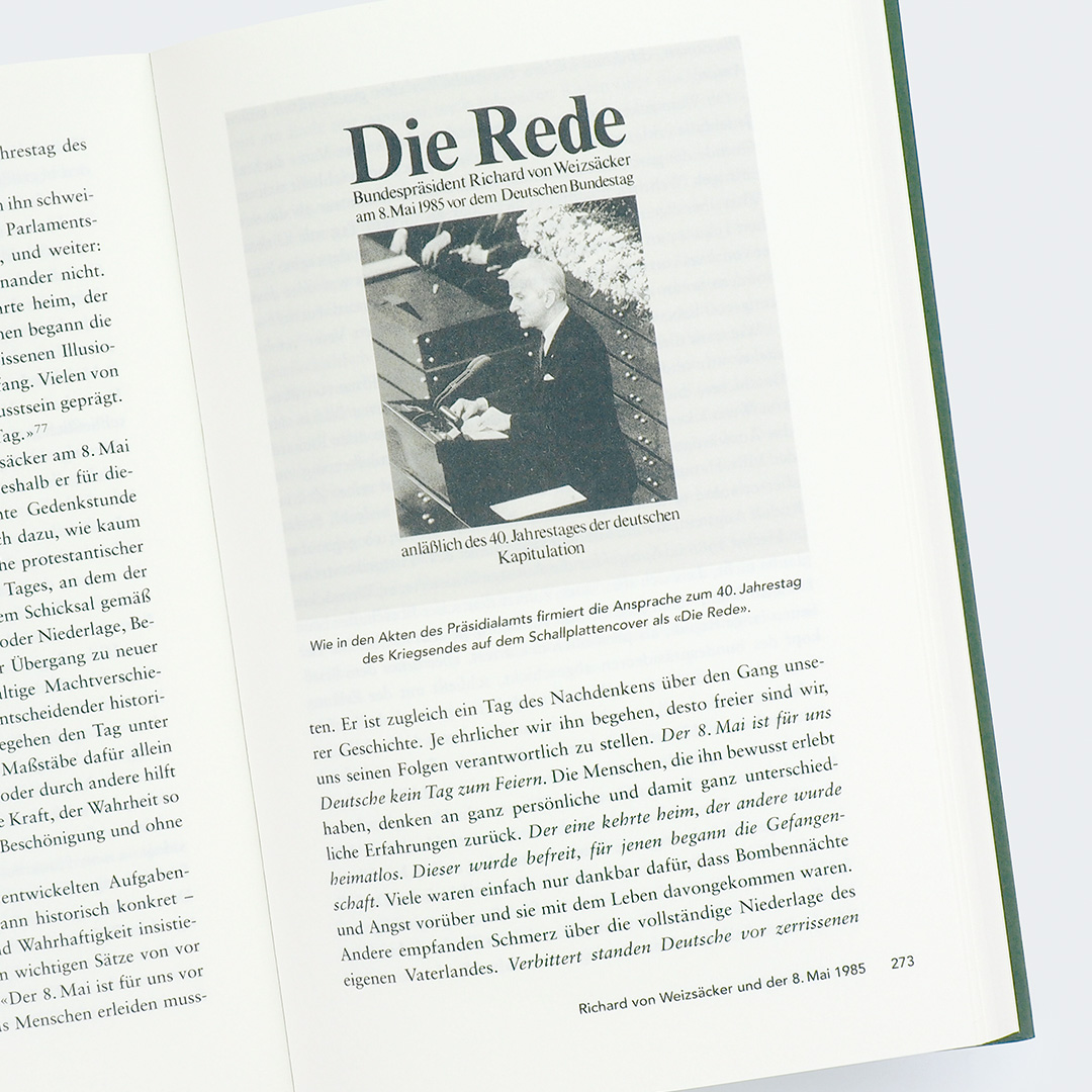 Richard von Weizsäcker war der letzte Bundespräsident, der die Jahre des Zweiten Weltkriegs noch als damals schon erwachsener Zeitgenosse erlebt hatte. Der weltweite Ruhm für seine Rede zum 40. Jahrestag des Kriegsendes am 8. Mai 1985 erklärt sich auch vor diesem Hintergrund. Mit Weizsäckers Präsidentschaft endet dieses Buch, das mit Theodor Heuss beginnt, der als erstes Staatsoberhaupt der Bundesrepublik Deutschland Formen und Wege finden musste, «im Namen der Deutschen» über die Verbrechen des «Dritten Reiches» zu sprechen.