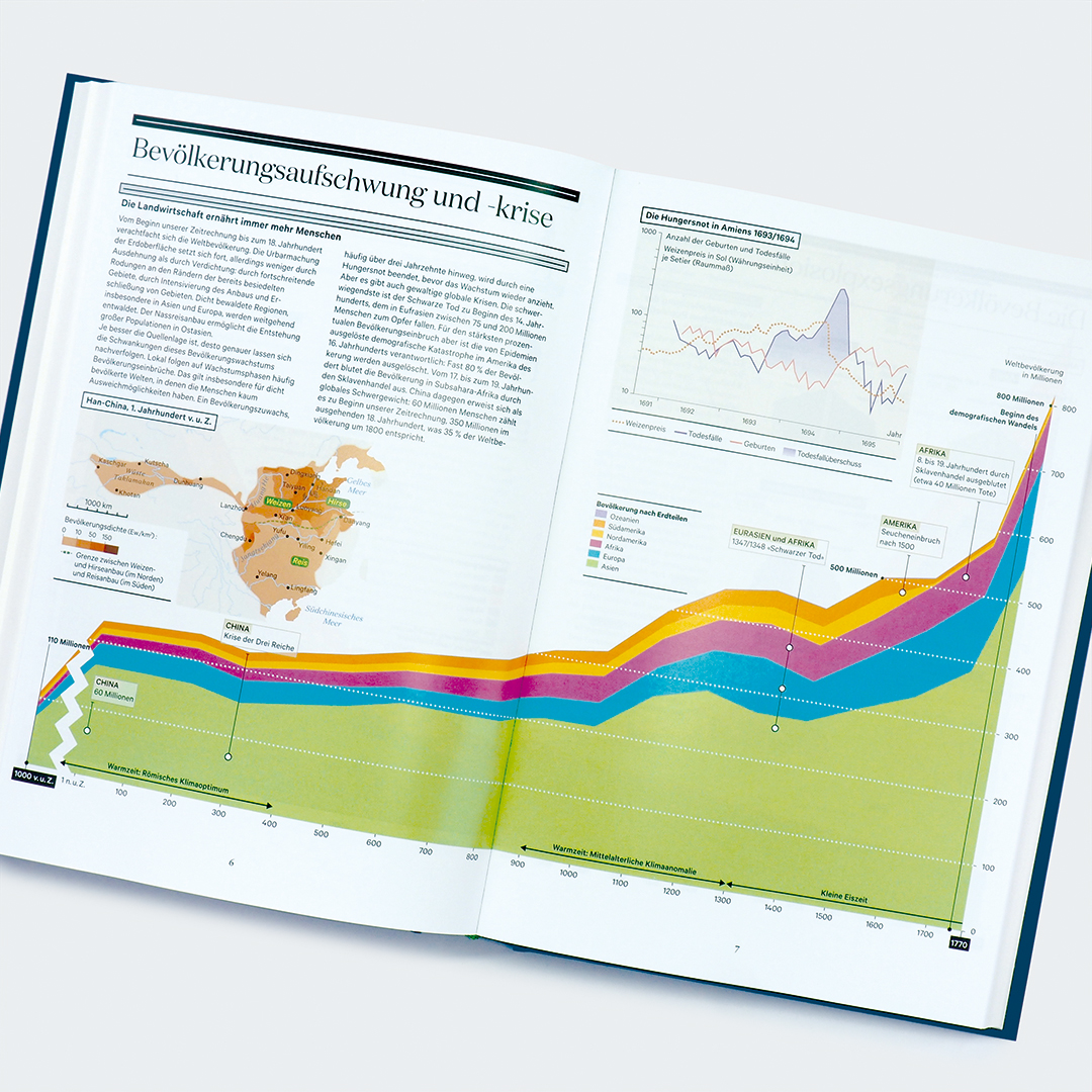 "Die historische Erzählung, die Sie lesen werden, wurde von einem Geografen geschrieben. Sie möchte deutlich machen, was die Geschichte von Gesellschaften ihrem Raum verdankt. Geografen beschäftigen sich für gewöhnlich damit, den Raum der heutigen Gesellschaften zu erforschen und zu interpretieren, während es hier letztlich darum geht, ihre Werkzeuge für das Verständnis der Vergangenheit fruchtbar zu machen. ... Wir werden Meeresströmungen und Seefahrer kennenlernen, Berge, Wüsten und Eroberer, Bauern und zu kalte Winter."