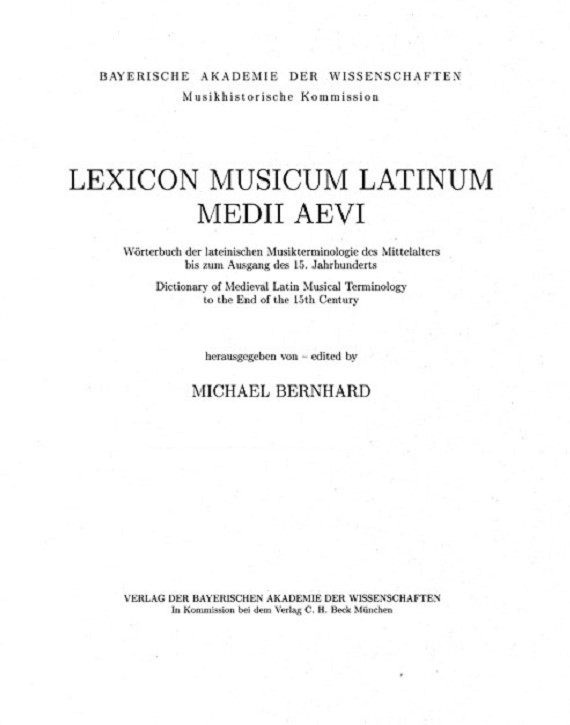 Lexicon Musicum Latinum Medii Aevi = Wörterbuch der lateinischen Musikterminologie des Mittelalters bis zum Ausgang des 15. Jahrhunderts = Dictionary of Medieval Latin Musical Terminology to the End of the 15th Century