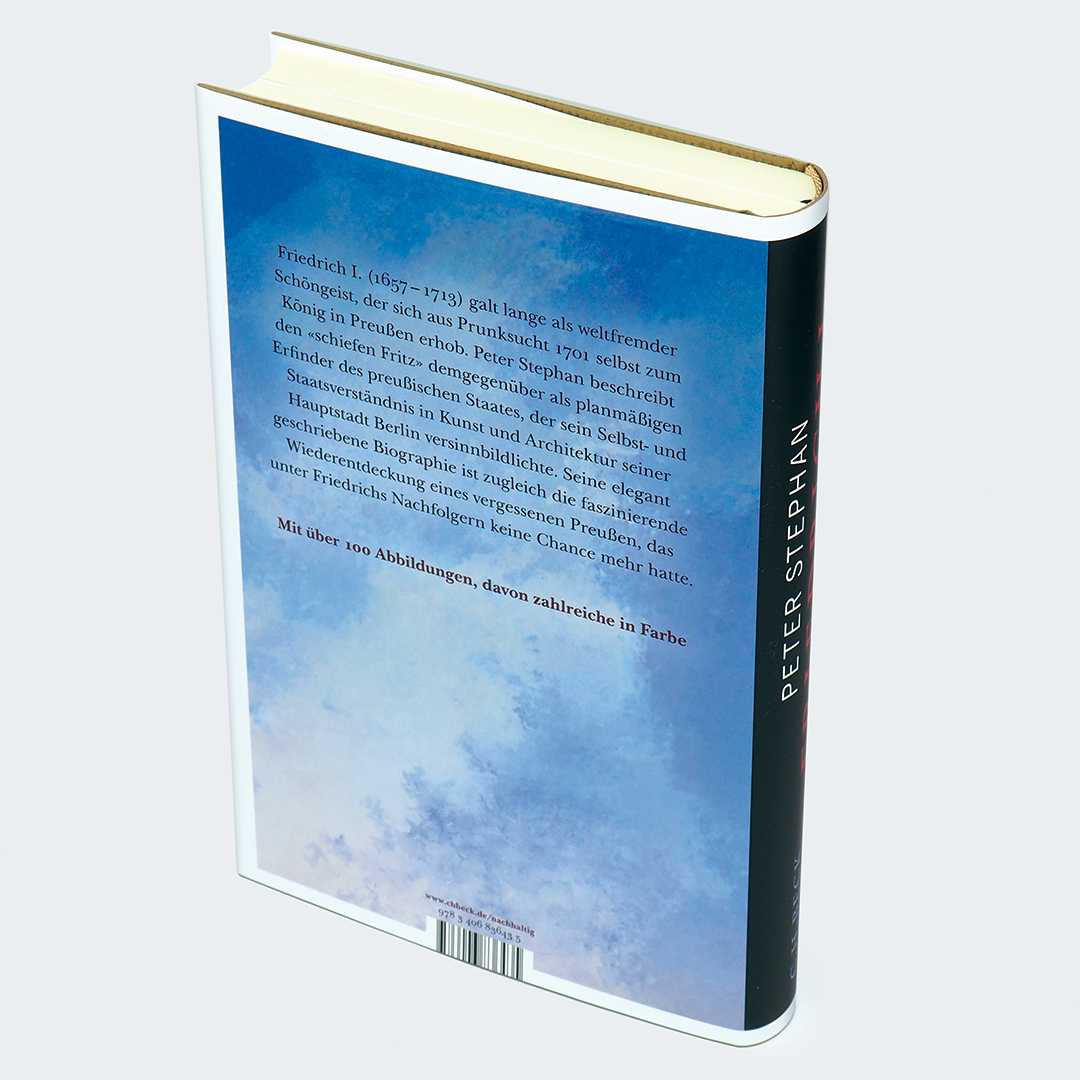 Schon sein Vater, der Große Kurfürst, traute seinem körperlich gehandicapten, hochsensiblen Sohn nicht viel zu, und die Nachwelt verband das von ihm erbaute Berliner Schloss, ein Hauptwerk des europäischen Barock, vor allem mit dem Namen des Architekten Andreas Schlüter. Für Generationen von Historikern begann die preußische Geschichte eigentlich erst mit seinem Nachfolger, dem Soldatenkönig Friedrich Wilhelm I. Peter Stephan unterzieht dieses Bild auf der Grundlage jahrelanger Forschung einer gründlichen Revision. Er beschreibt, wie Friedrich als brandenburgischer Kurfürst seine Krönung in Preußen planmäßig in die Wege leitete und damit den «großen Entwurf» eines preußischen Toleranz-, Kultur- und Rechtsstaats verband. Dabei gelingt es ihm auf meisterhafte Weise, Kunstwerke wie das Reiterdenkmal des Großen Kurfürsten, das Zeughaus und das Berliner Schloss zum Sprechen zu bringen – als beredte Zeugnisse von Leben und Staatsidee des ersten und am meisten verkannten preußischen Königs.
